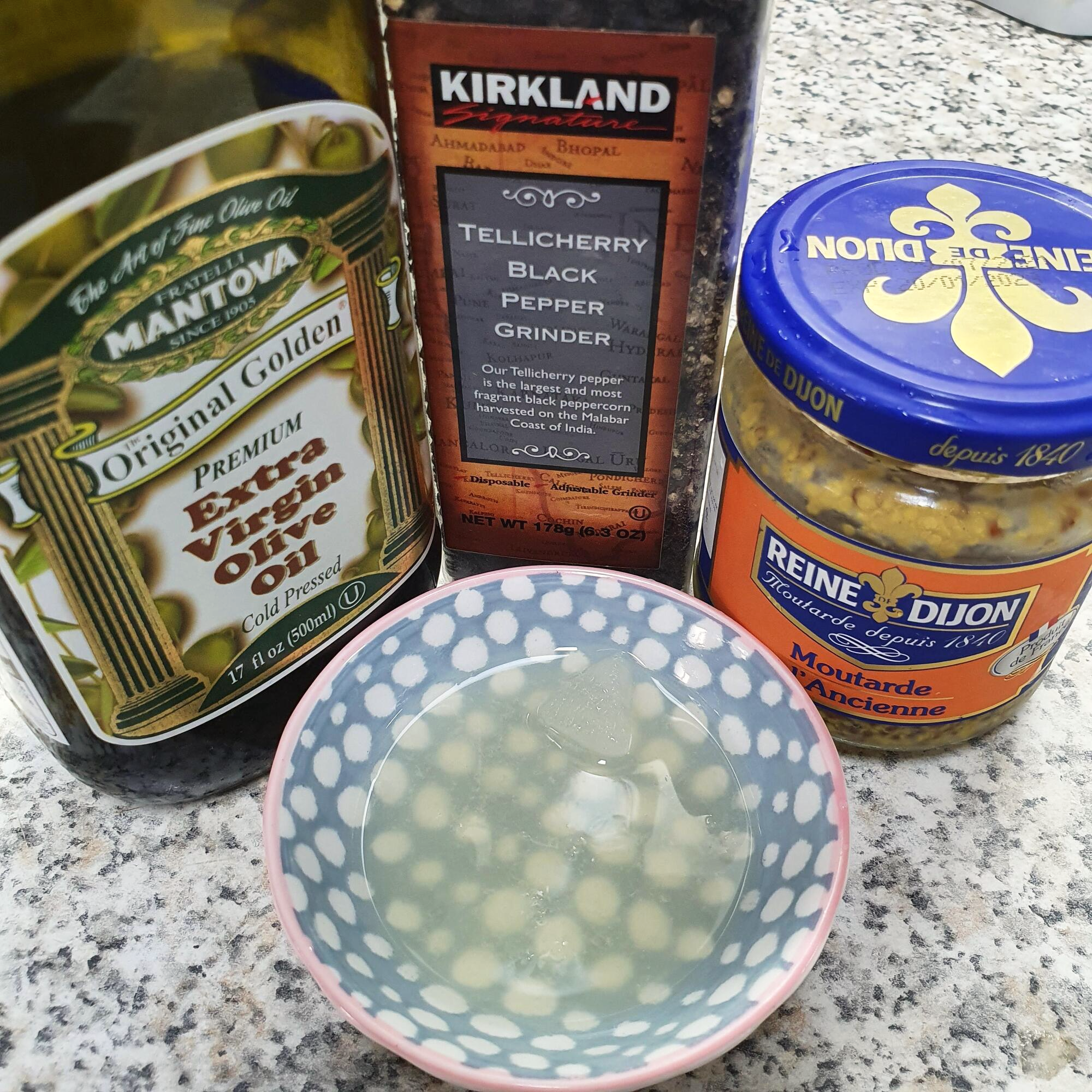 올리브유, 레몬즙, 홀 그레인 머스터드, 후추를