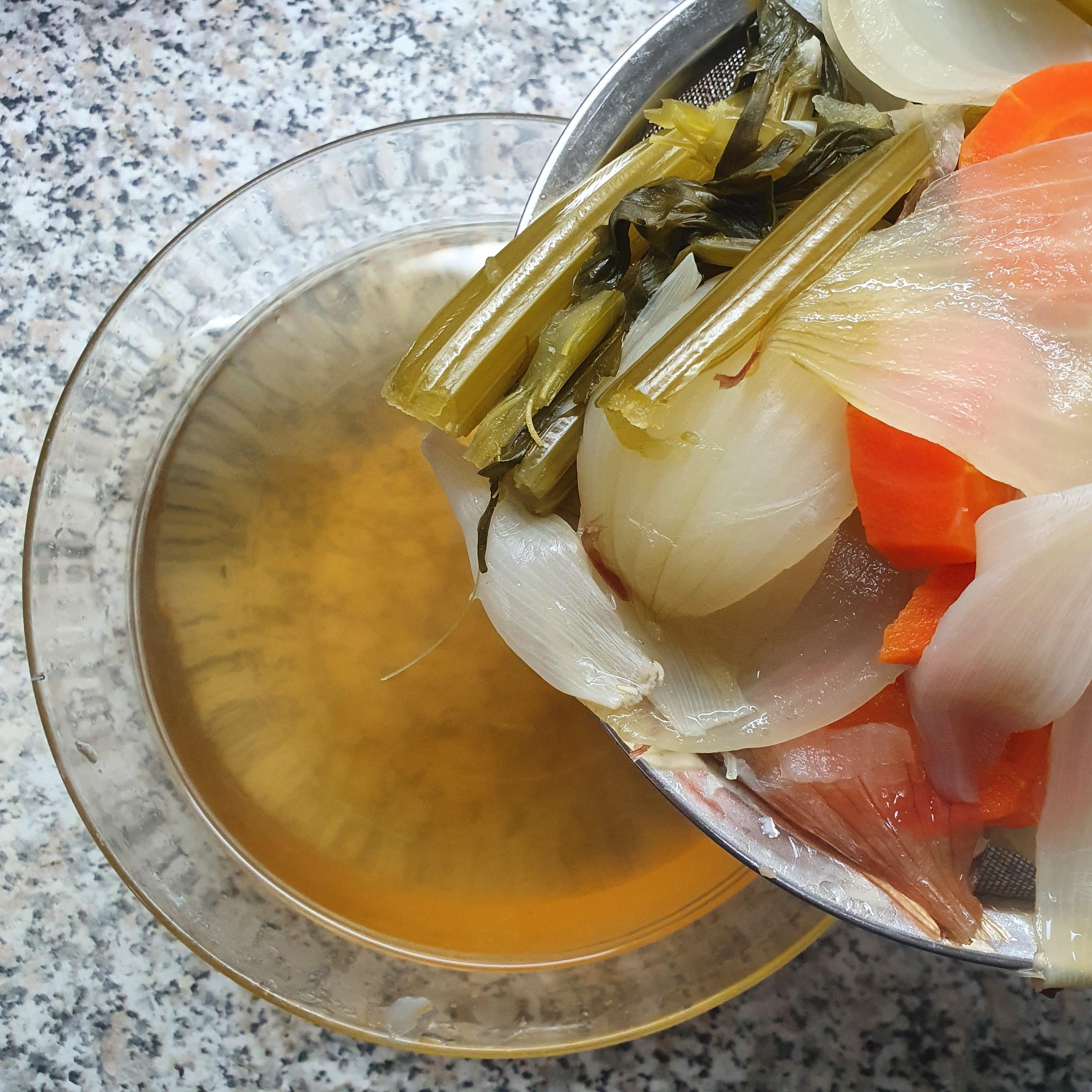 끓인 채수를 채에 걸러 맑은 채수를